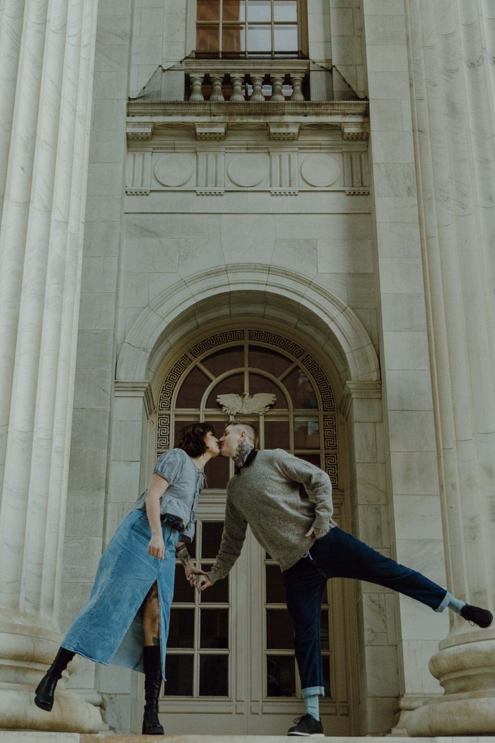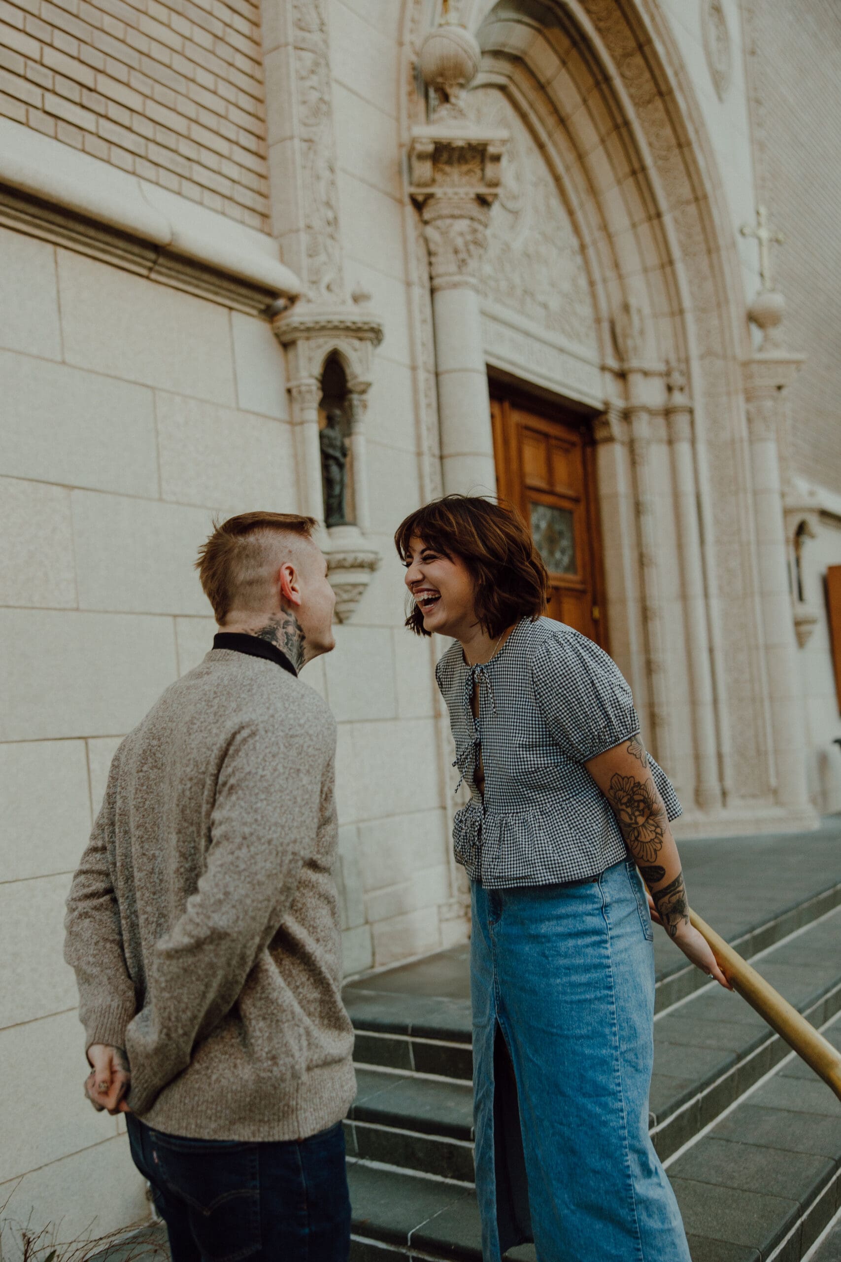 Byron White is an amazing option for couples who want urban or city vibes without having to run around the whole city. Within three blocks we can get to the beautiful white columns of the courthouse, an old church with beautiful wooden doors, and amazing views of skyscrapers! There are very few cons of this location in my opinion but I must mention the fact that it can get a tad busy on the weekends (I’ve never ran into a time when there wasn’t a spot available on the steps), and the easiest parking right across the street costs $7.