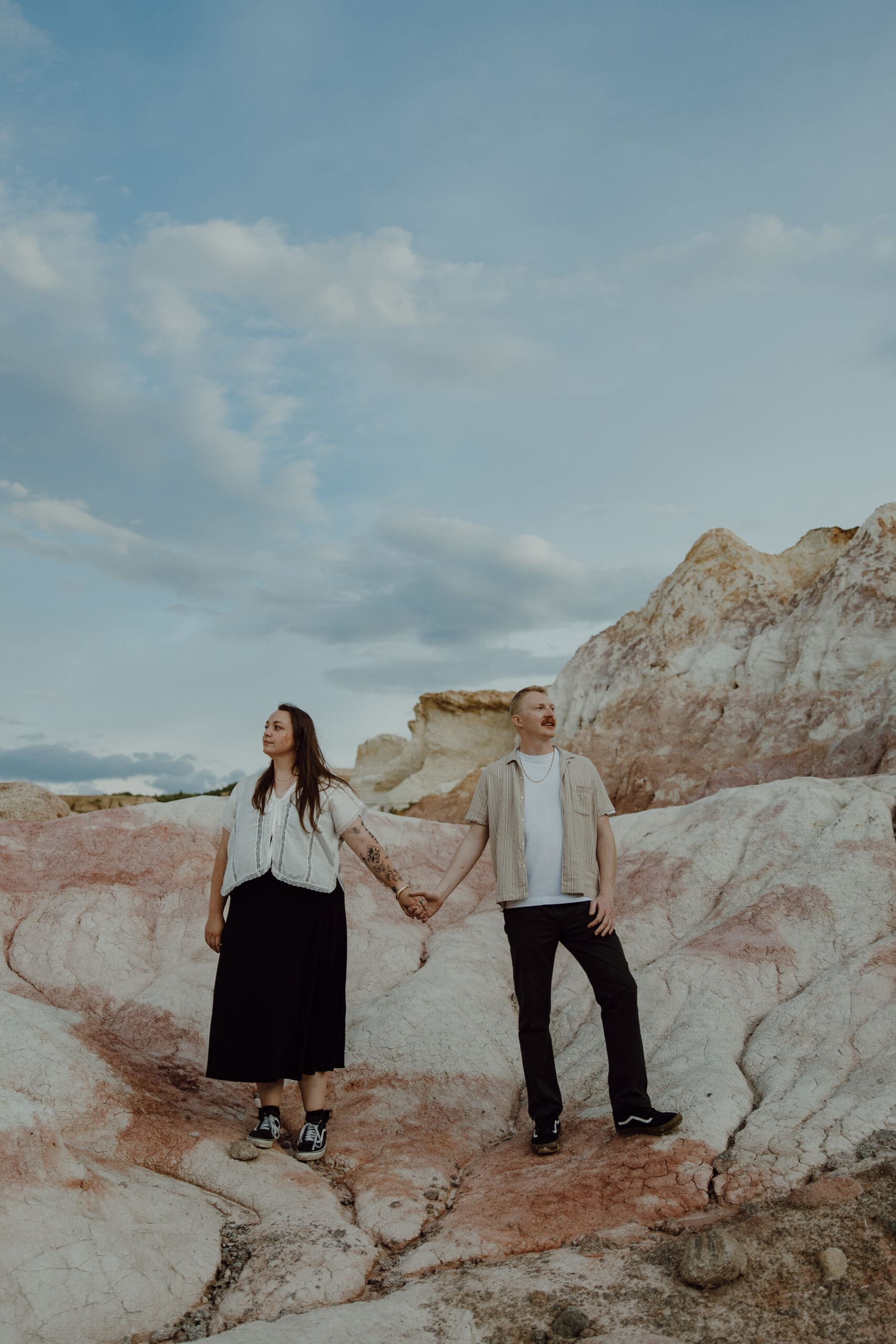If you’re looking for a unique outdoor location, the Paint Mines are perfect for you!! Pros include that it is a pretty private location, there are rarely more than 5 other people, there’s a variety of scenery including grass fields, the beautiful rocks, and even some views of windmills, and there is super easy parking! The few cons are that it’s definitely a drive from Denver (about 2 hours), and because of the rocks you will get covered in white dust! If you can get over the dust and the commute, the Paint Mines are an amazing option for a unique engagement session!